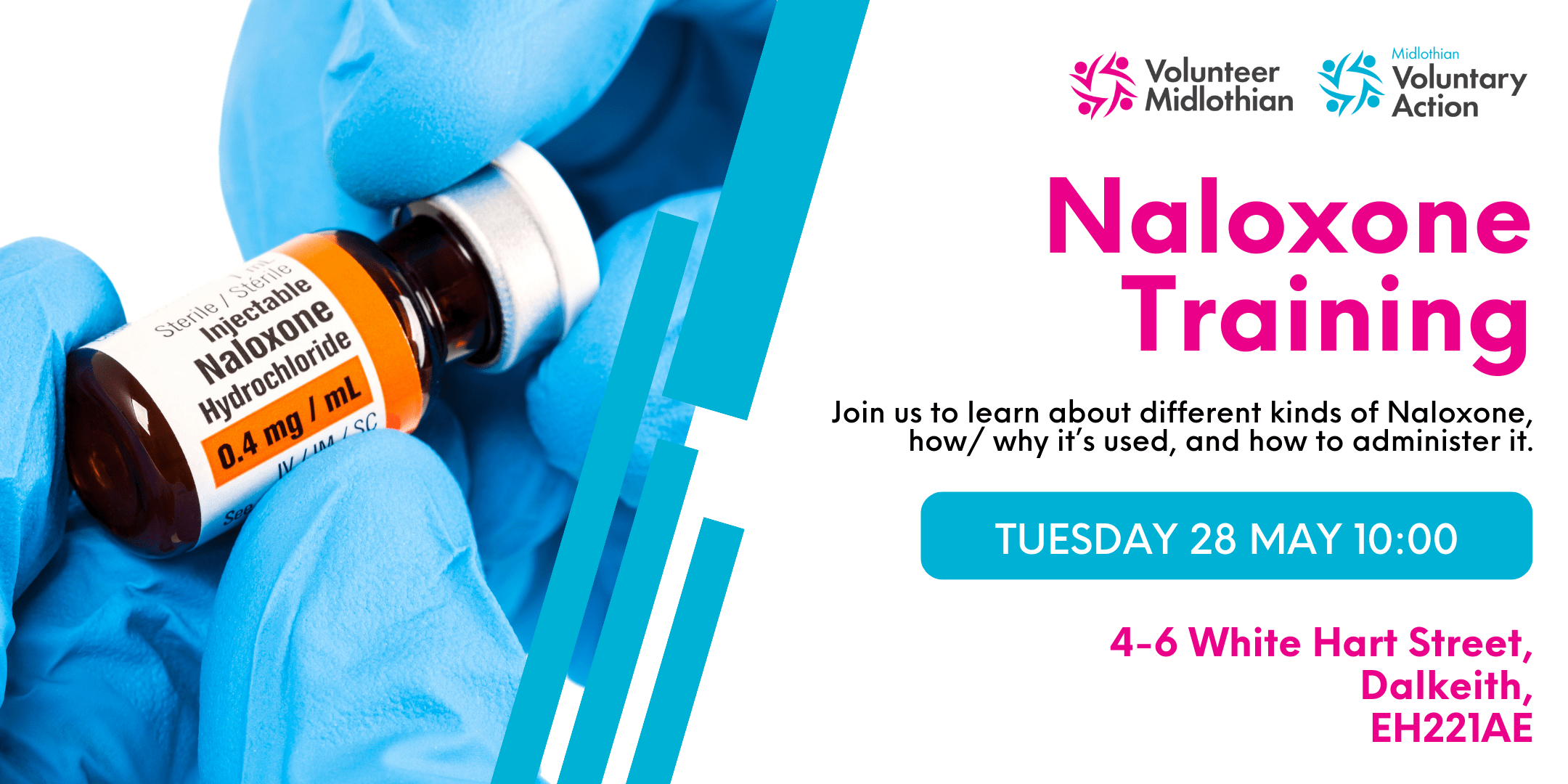 Midlothian Voluntary Action and Volunteer Midlothian are hosting a free naloxone training session (approx. 40 mins) on Tuesday 28 May at 10am, in our offices at 4 – 6 White Hart Street, Dalkeith, EH22 1AE.