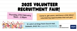 Volunteer Midlothian is hosting their annual Volunteer Recruitment Fair. Join us on Thursday 27 February 10AM - 2.30PM, at St John’s and King's Park Church in Dalkeith (opposite Morrisons). Local …