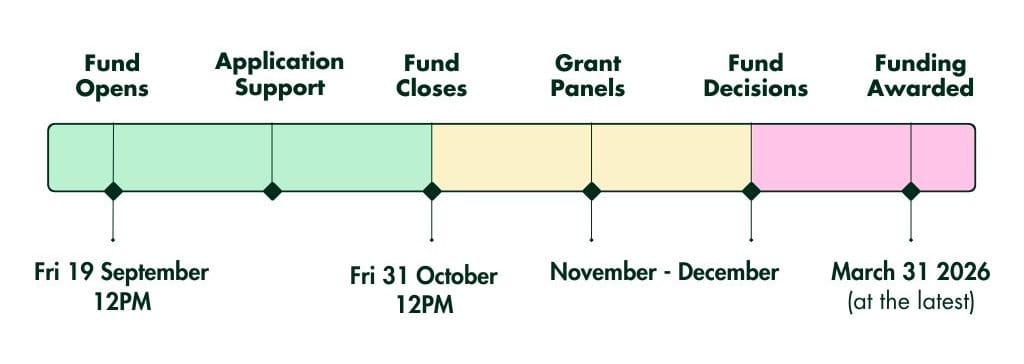 Decisions for small and large grants will be made via a funding panel in the end of November 2025, using pre-determined marking criteria and scoring. Decisions about microgrants will be made in early December. A copy of a scoring cards is included in each application form.